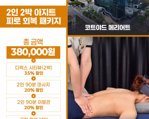 가장 안전한 다낭 코트야드 메리어트 2인 가족, 연인, 부모님을 위한 패키지입니다.다낭 코트야드 메리어트 피로 회복 패키지입니다 !!2인을 위한 2박 3일 패키지로써 2인 가족, 연인, 부모…2025-10-29 -