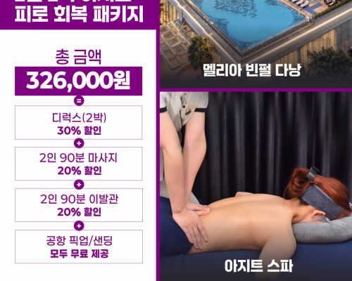 다낭 멜리아 빈펄 2인 가족, 연인, 부모님을 위한 패키지입니다.다낭 멜리아 빈펄 피로 회복 패키지입니다 !!2인을 위한 2박 3일 패키지로써 2인 가족, 연인, 부모님을 …2025-10-29 -